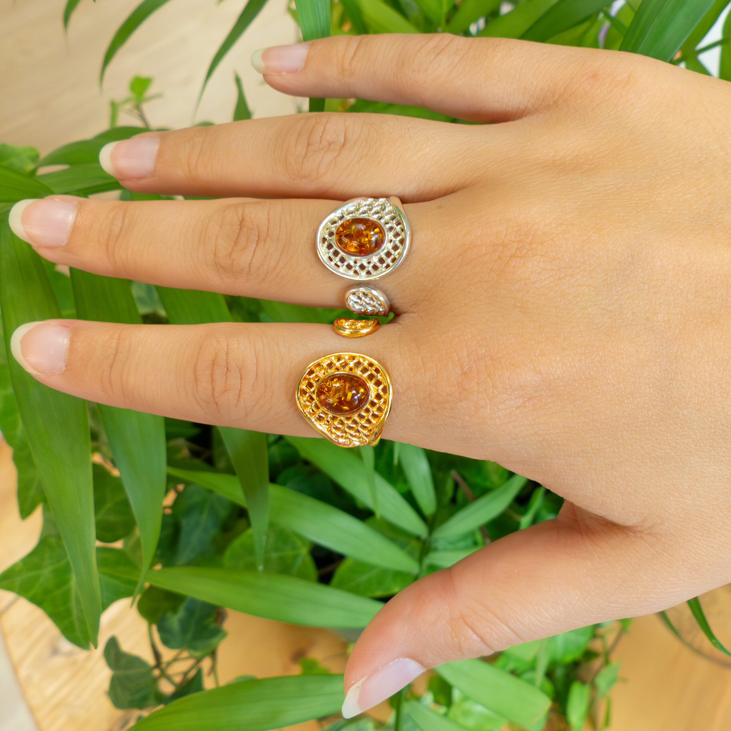 Ornée d’une pierre en Ambre de forme ovale.